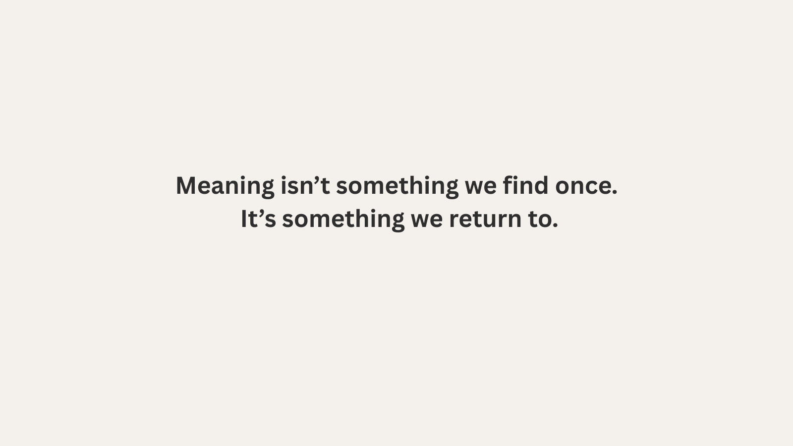 Returning to meaning isn’t a failure. It’s a sign of awareness. It’s noticing drift and choosing to come back. Not to the exact version we once found, but to an updated understanding shaped by who we’ve become since then.