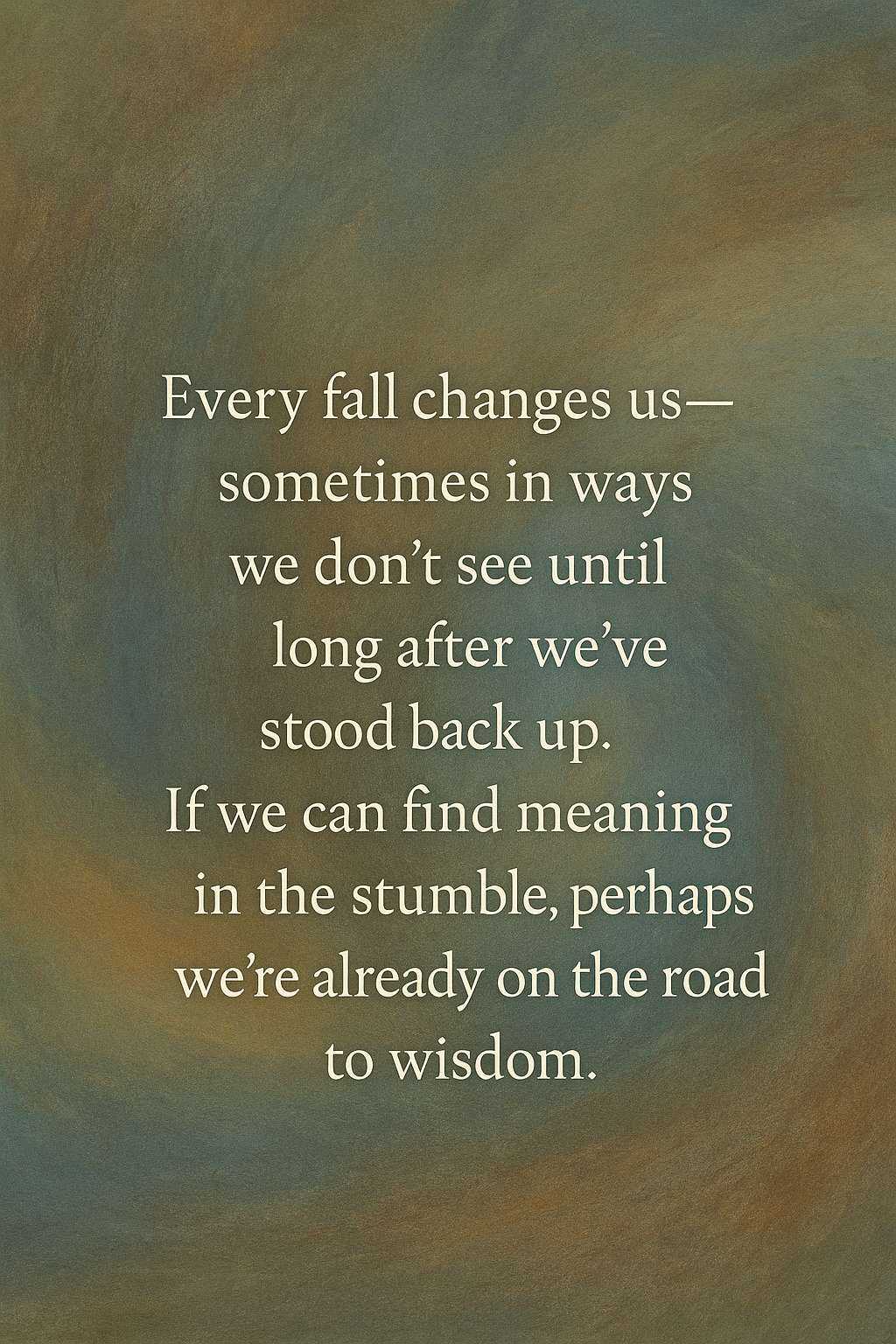 Every fall changes us — sometimes in ways we don’t see until long after we’ve stood back up. If we can find meaning in the stumble, perhaps we’re already on the road to wisdom.